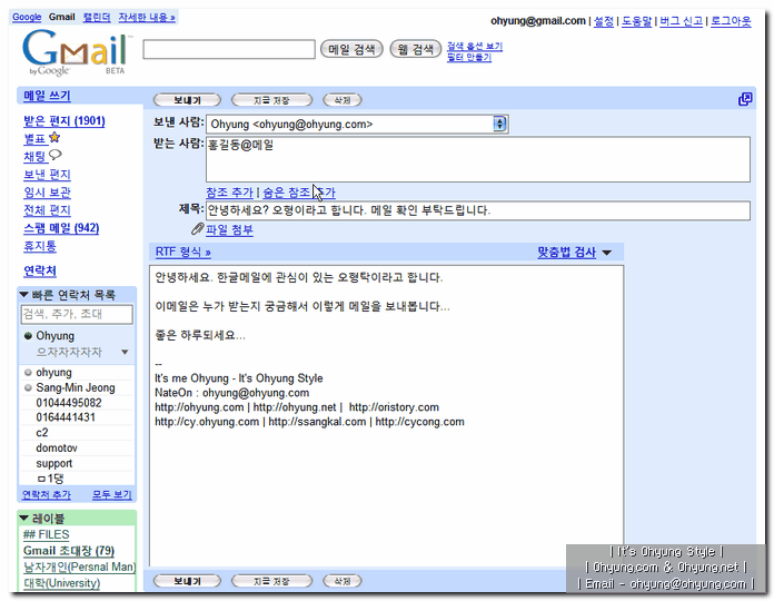 한글 메일에 대한 이전 포스팅