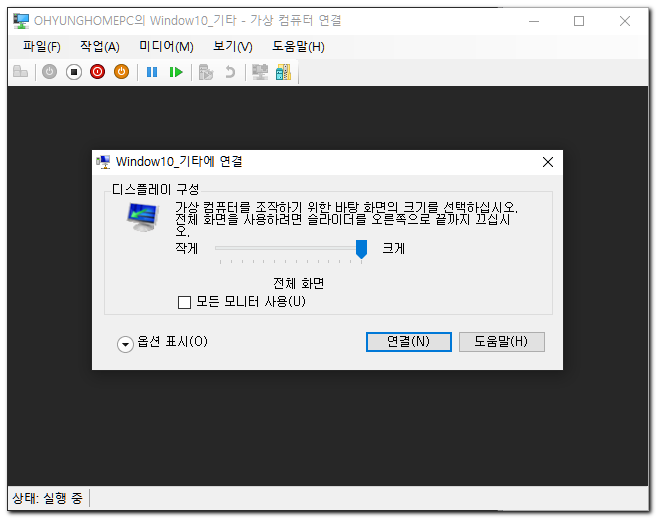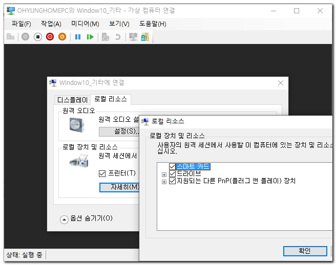 Hyper-V 에서 ~에 연결 팝업을 다시 띄우면서 로컬 리소스 변경하는법