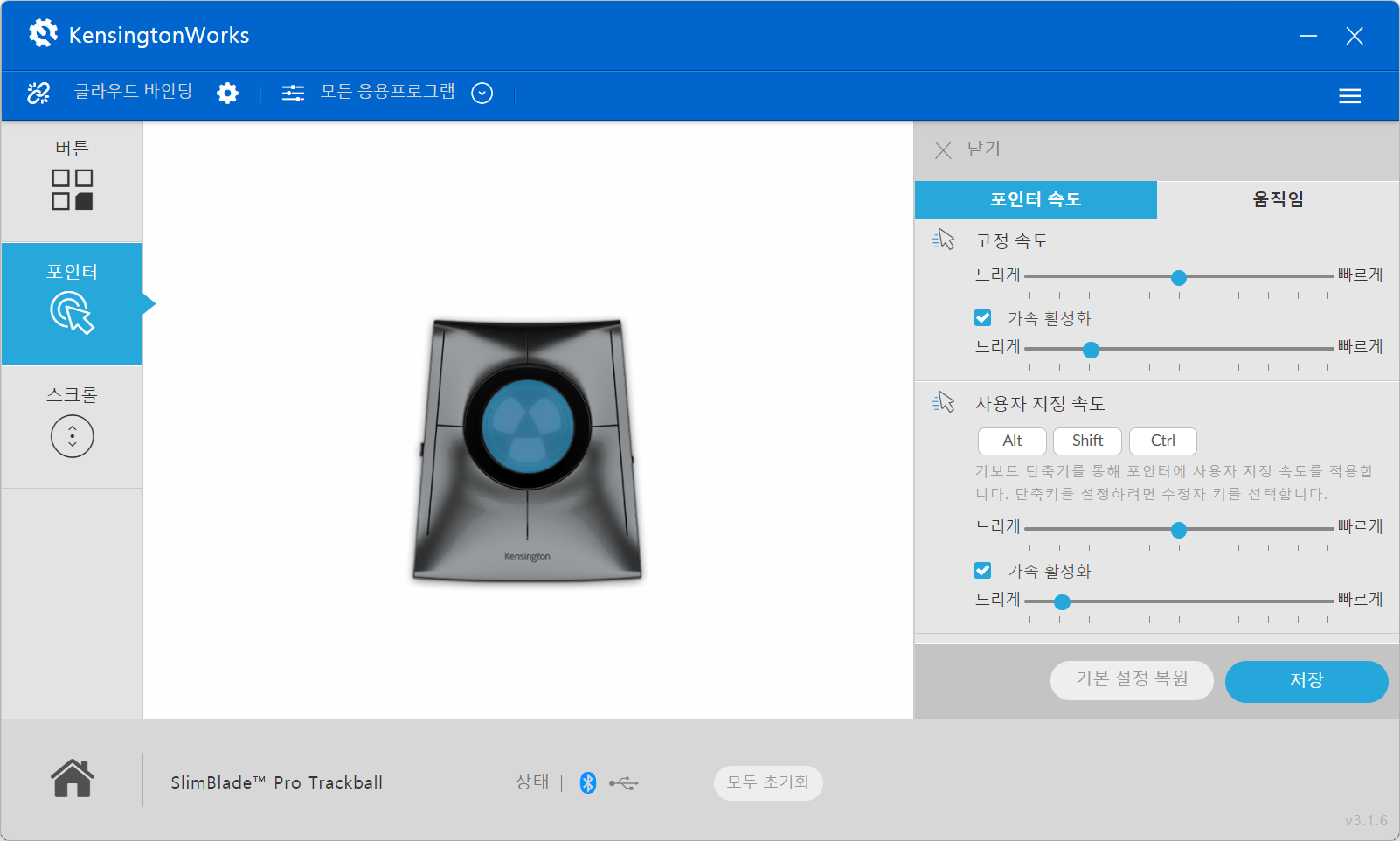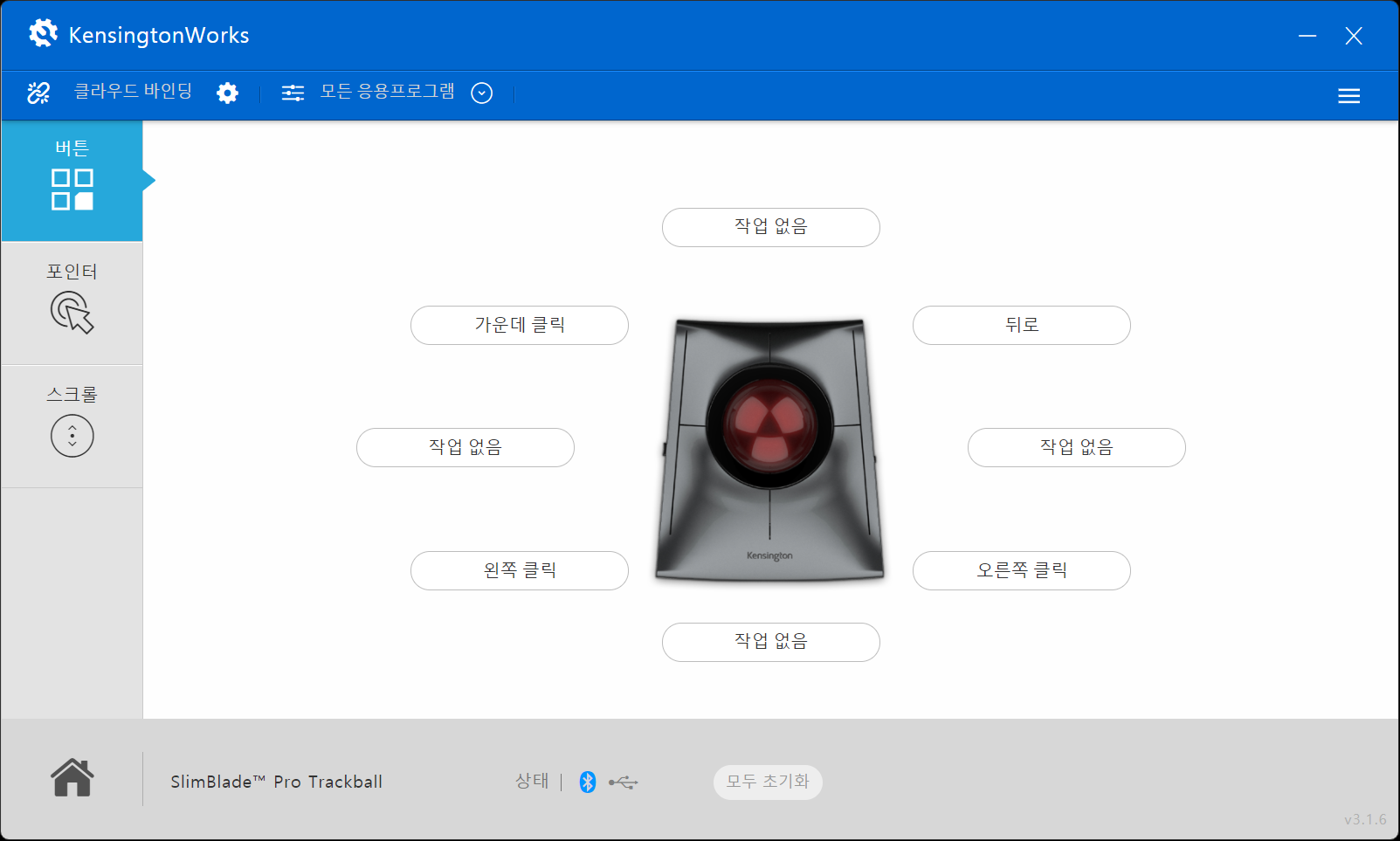 설정이 트랙볼 기기 내부에 저장되지 않음.