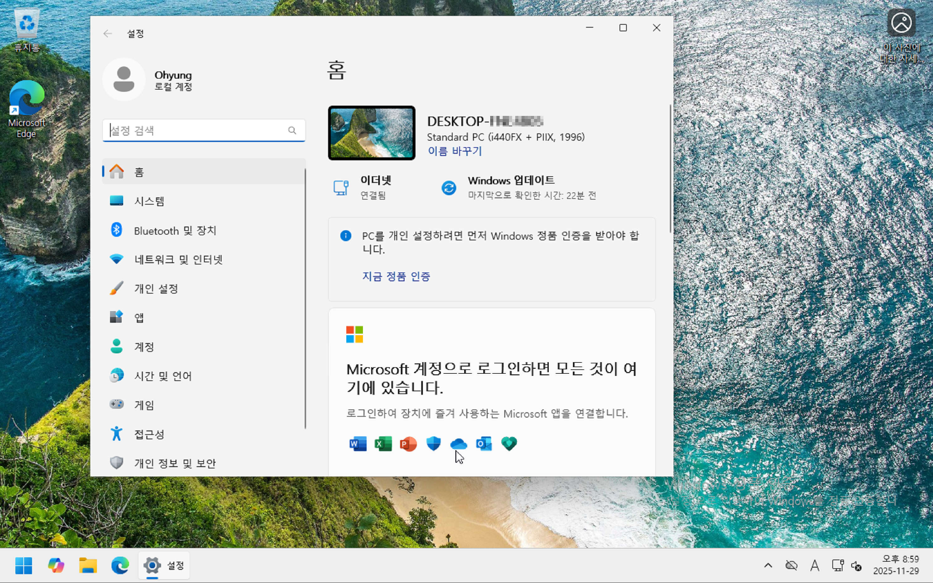 중간에 로컬 사용자 용도로 설치 - 설치 도중 Shift + F10 누르고 아래 입력